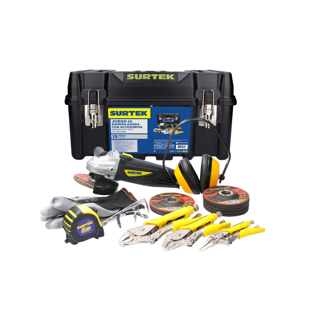 JP19 Surtek Juego combinado de herramienta con mini esmeriladora, 19 piezas
