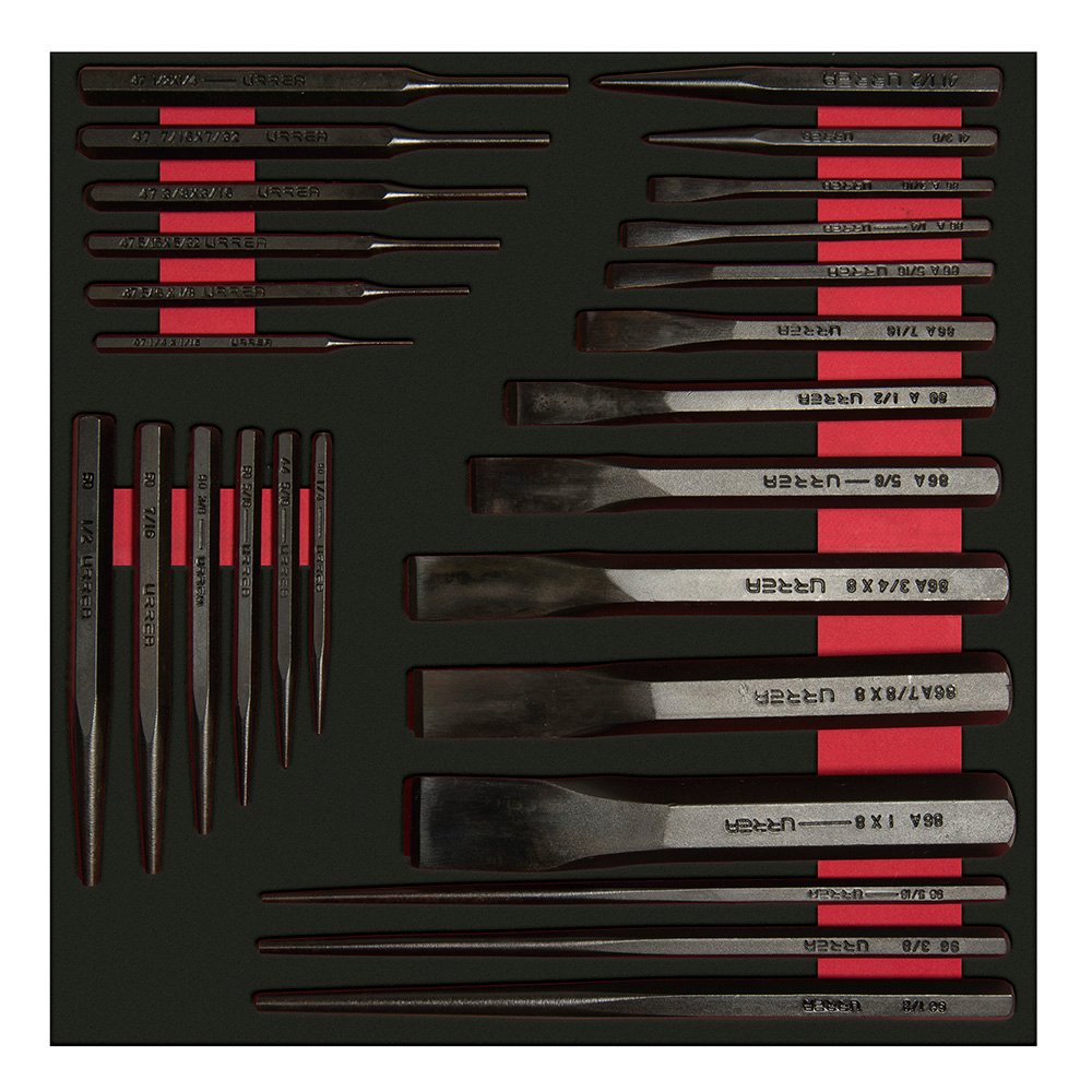 CH211 Urrea Juego de cinceles, puntos y botadores con bandeja EVA, 26 piezas