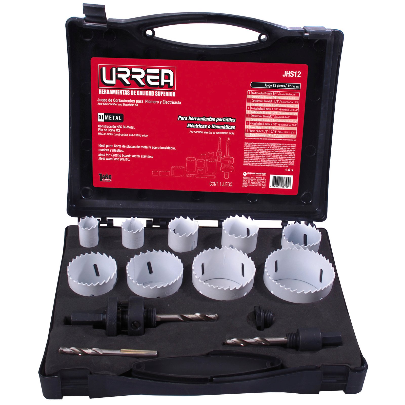 JHS12 Urrea Juego de cortacírculos bimetálicos, 12 piezas