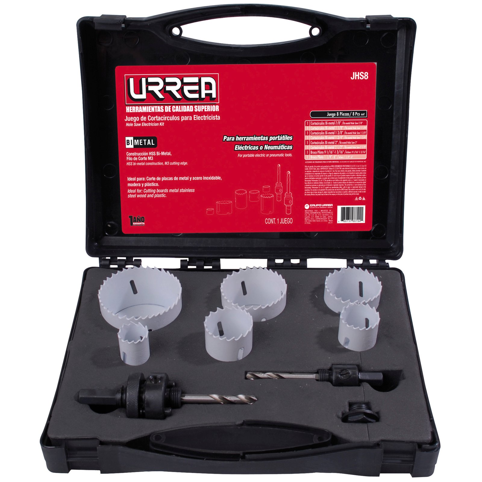 JHS8 Urrea Juego de cortacírculos bimetálicos, 8 piezas