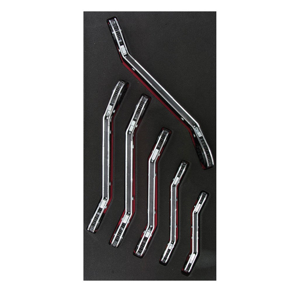 1190M Urrea Juego de llaves de estrías pulido espejo planas de matraca métricas, 6 y 12 puntas, 5 pz