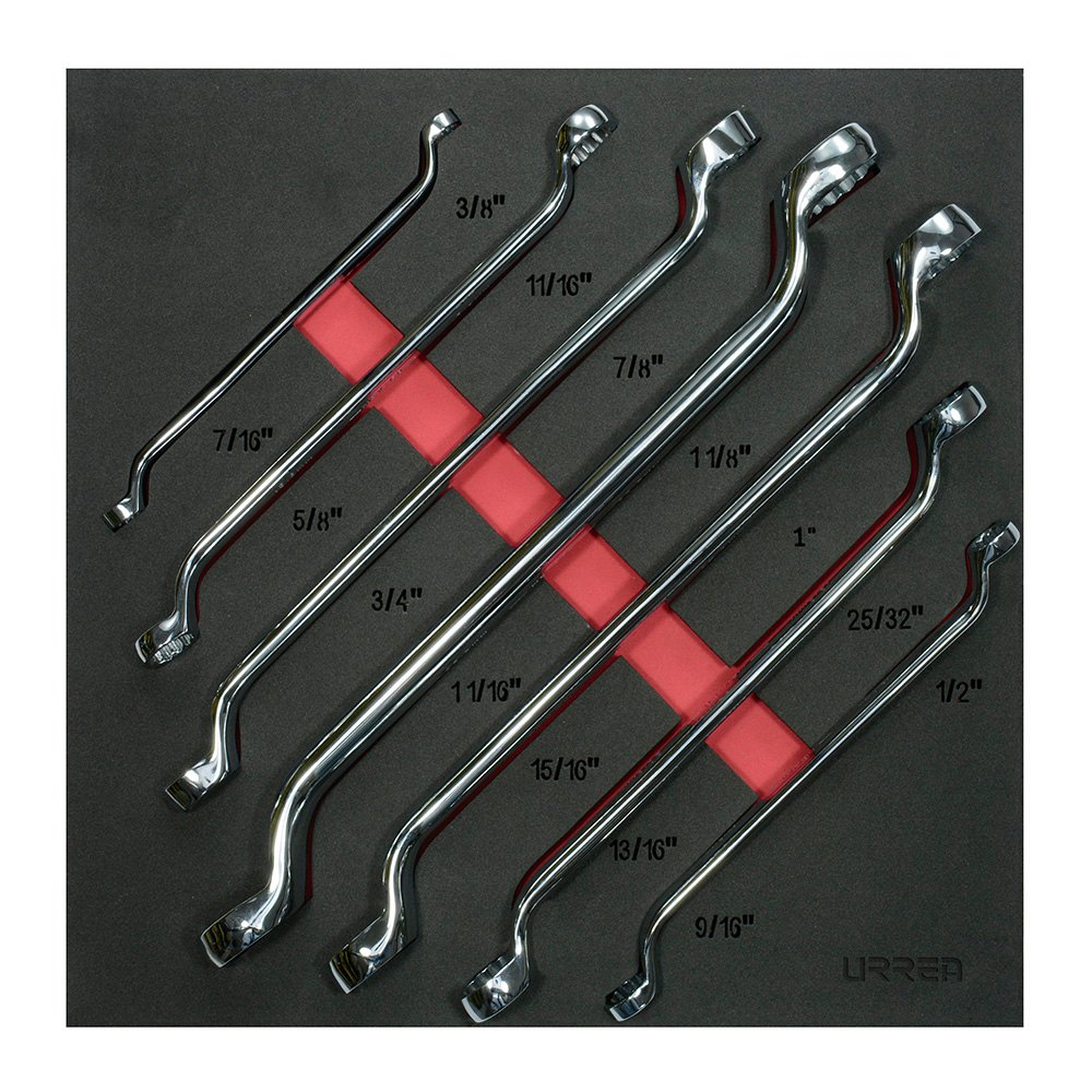 1100I Urrea Juego de llaves de estrías pulido espejo de 15° en pulgadas, 12 puntas, 7 piezas