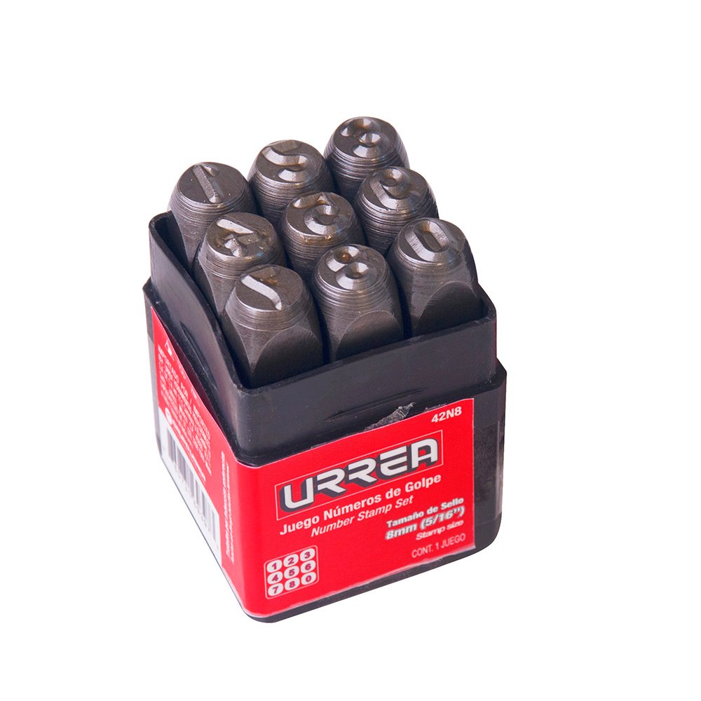42N8 Urrea Juego de números del “0” al “9” de golpe 8 mm, 9 piezas