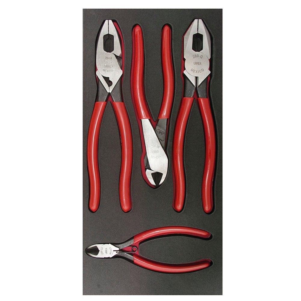CH126 Urrea Juego de pinzas de electricista con bandeja EVA, 4 piezas