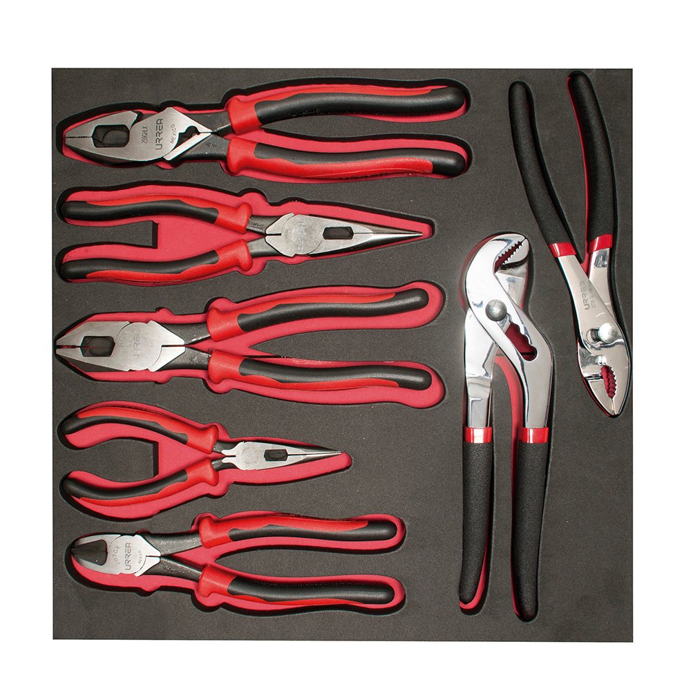 CH212 Urrea Juego de pinzas bimaterial con bandeja EVA, 7 piezas