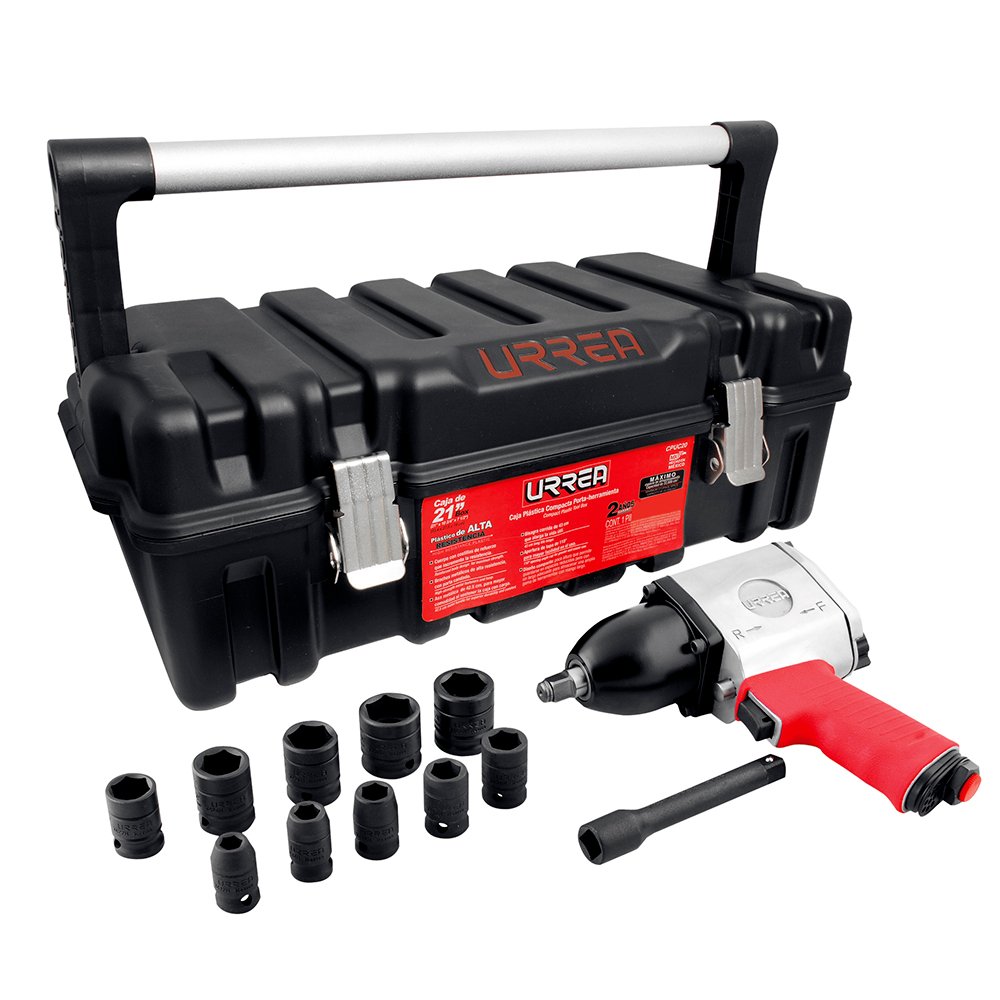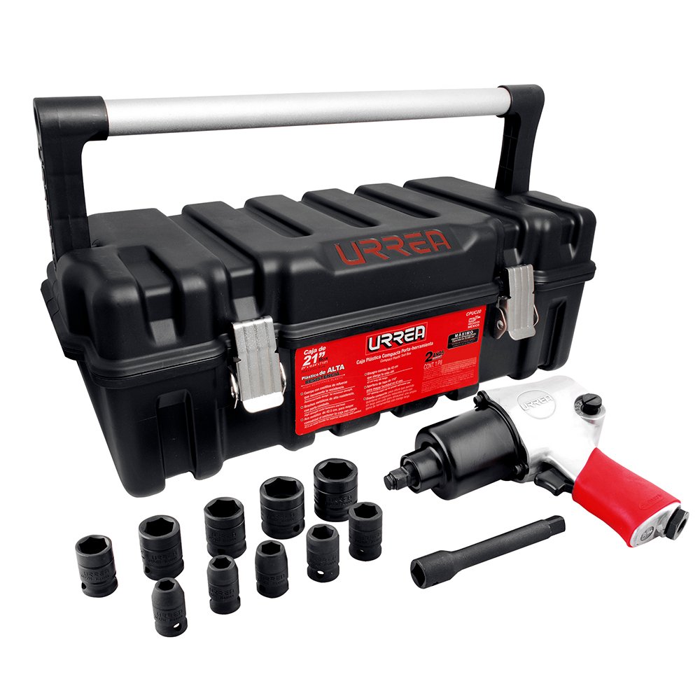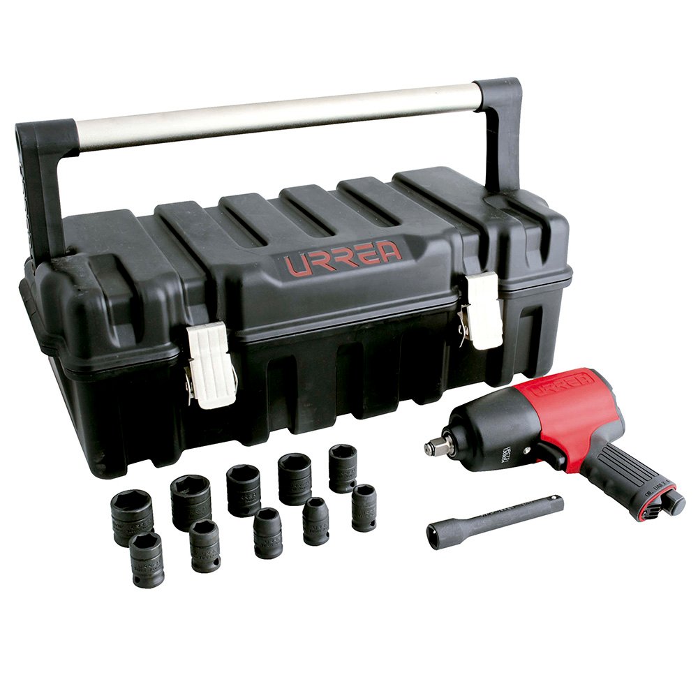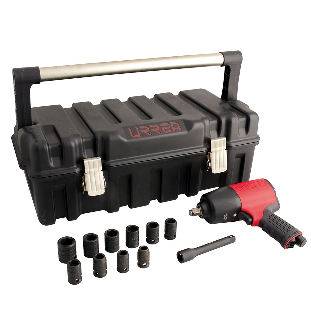 UP734HK Urrea Juego de pistola de impacto neumática cuadro de 1/2″ y accesorios en pulgadas, 13 piezas