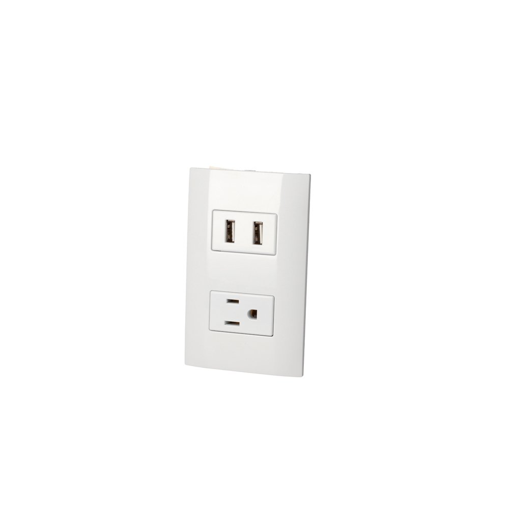 P432B Surtek Placa 1 contacto 1 USB doble 1/3, línea Americana, color blanco