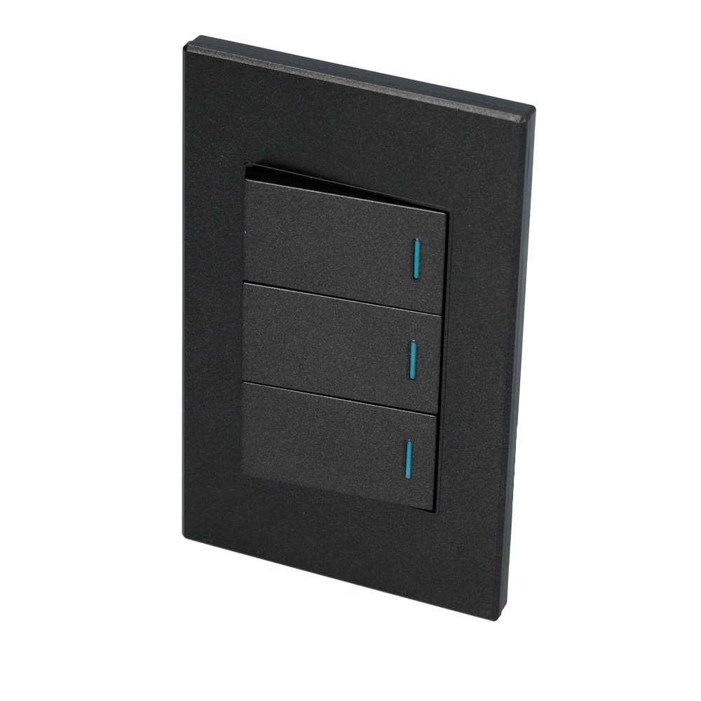P623N Surtek Placa 3 Interruptor 1/3, línea Premium, color negro