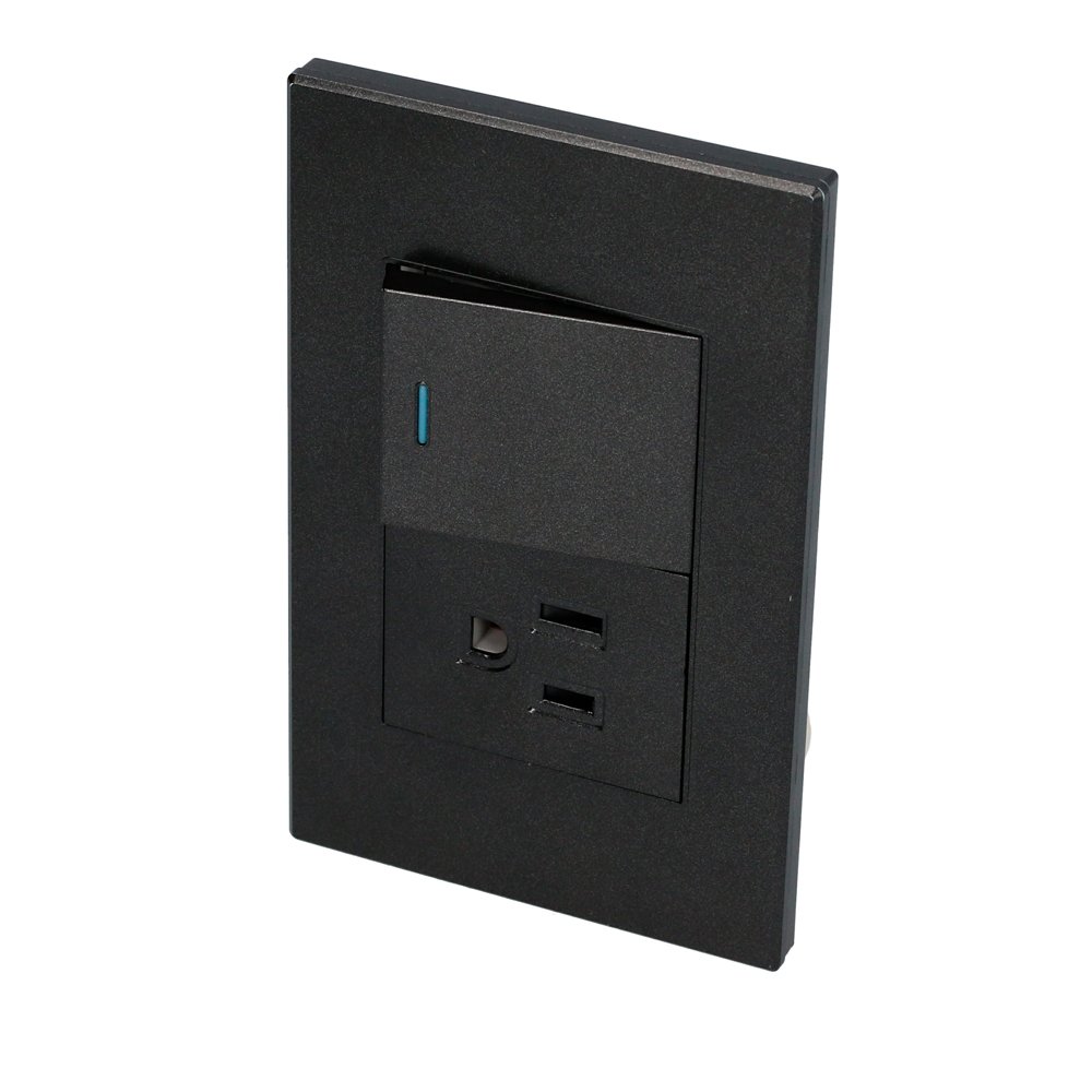 P624N Surtek Placa 1 Interruptor 1 contacto 1/2, línea Premium, color negro