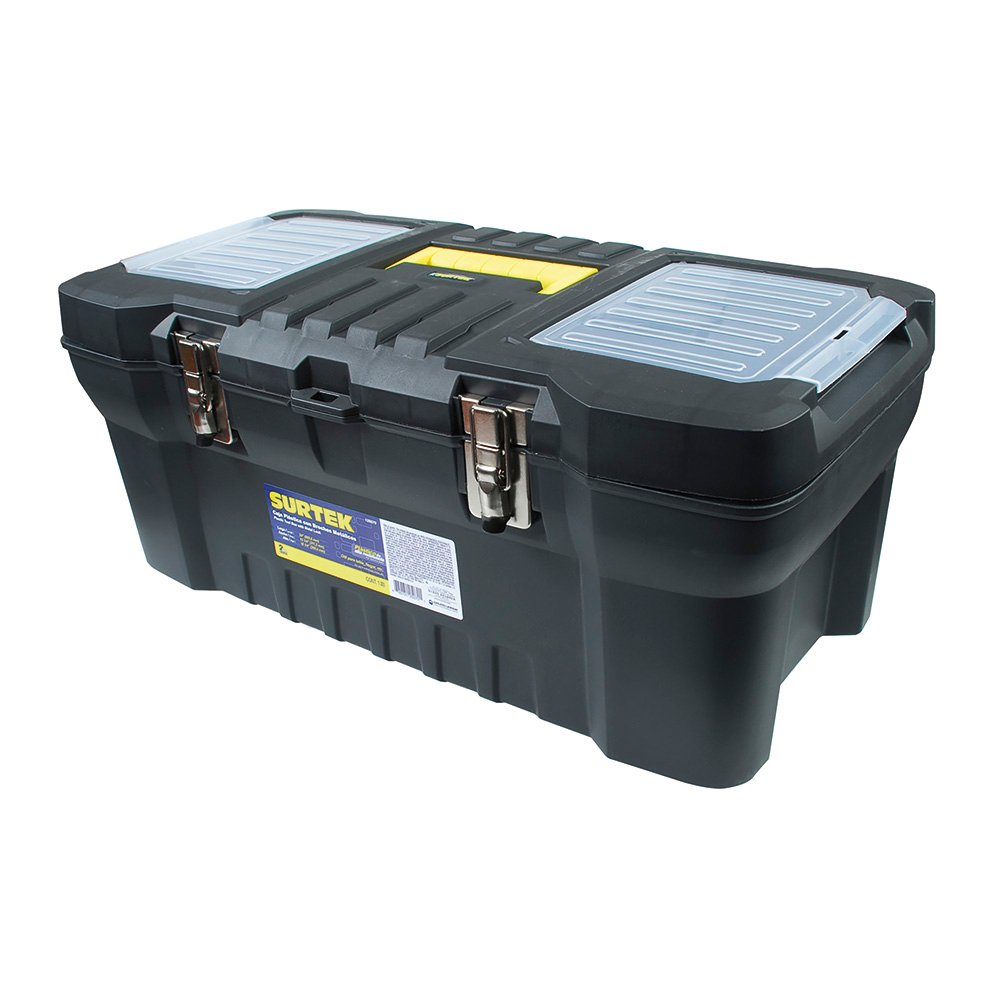 125070 Surtek Caja portaherramientas plástica con broches metálicos y organizador 24″ x 12″ x 10″