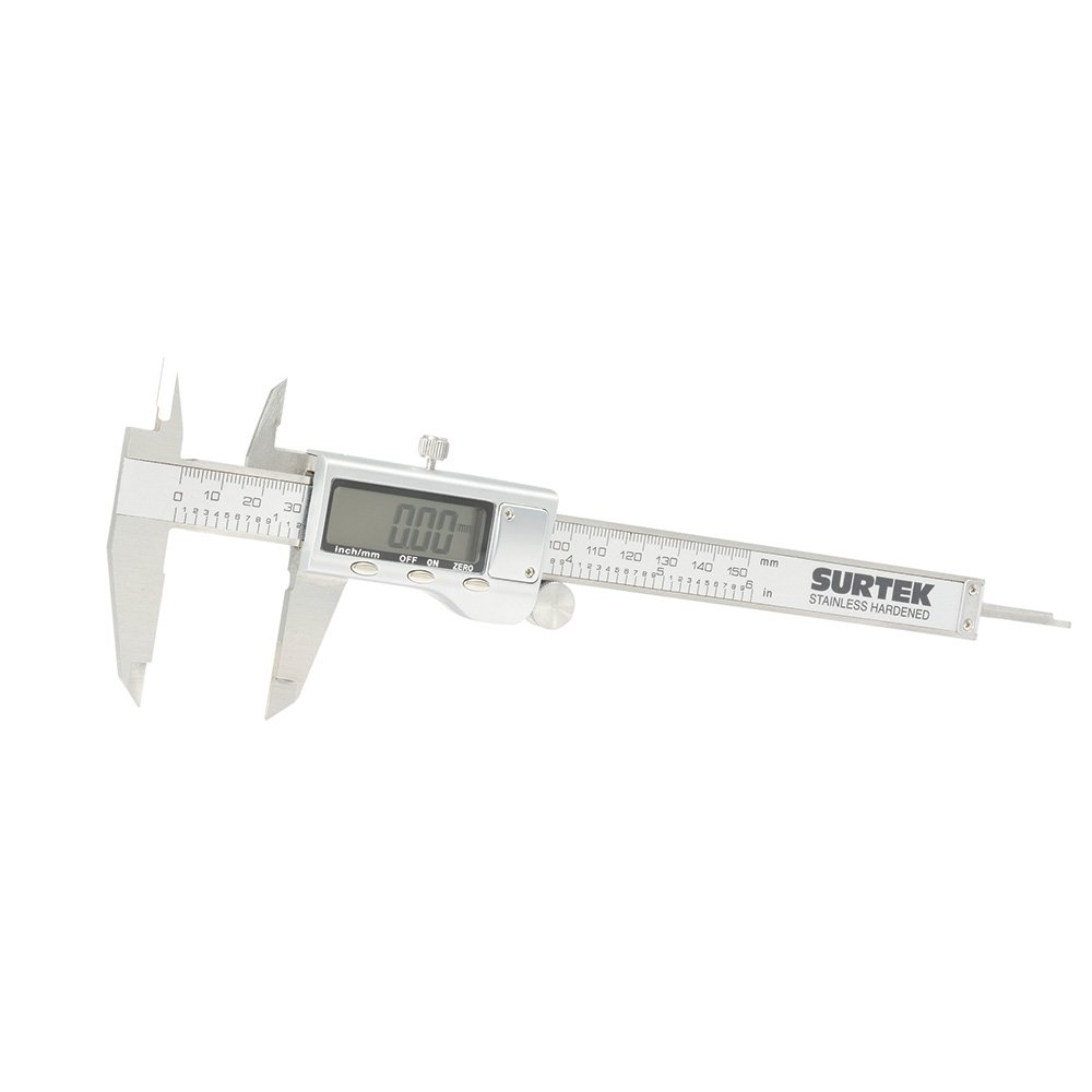 122204 Surtek Calibrador en pulgadas y milímetros digital con pantalla metálica 0 – 6″