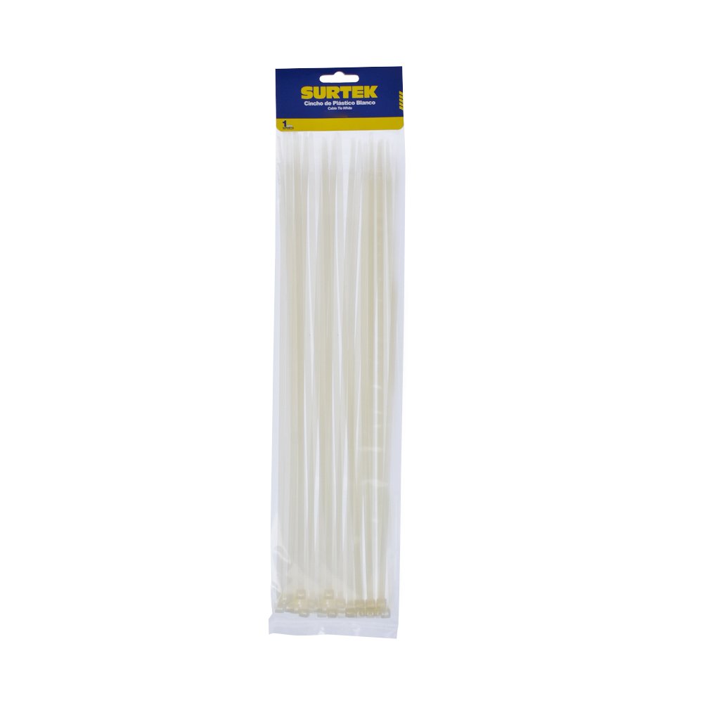 114214 Surtek Cinchos plásticos 368 x 4.6 mm, tensión 22 Kg de 25 piezas color blanco